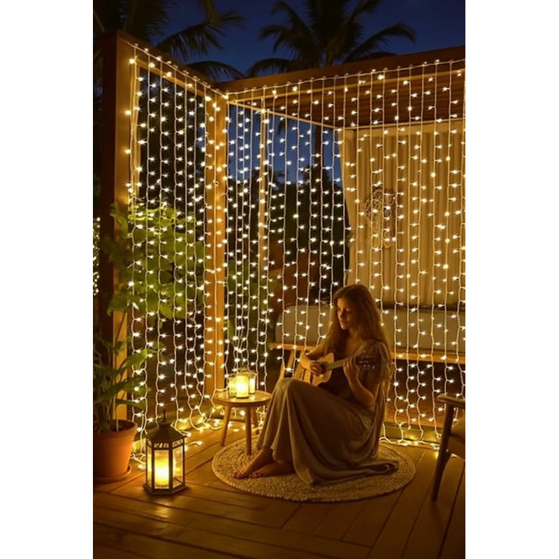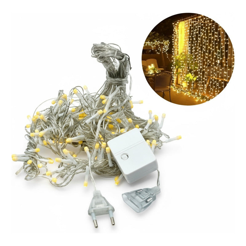 Cortina De Luces Lluvia X200 Luces Blanco Cálido Transparent Blanco Cálido
