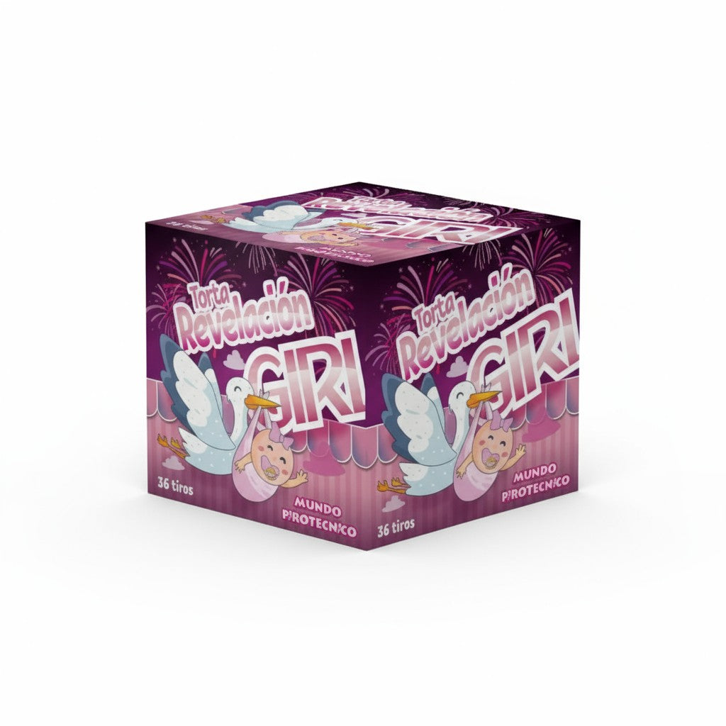 Torta pirotécnica rosada de 36 tiros, ideal para revelar el género.