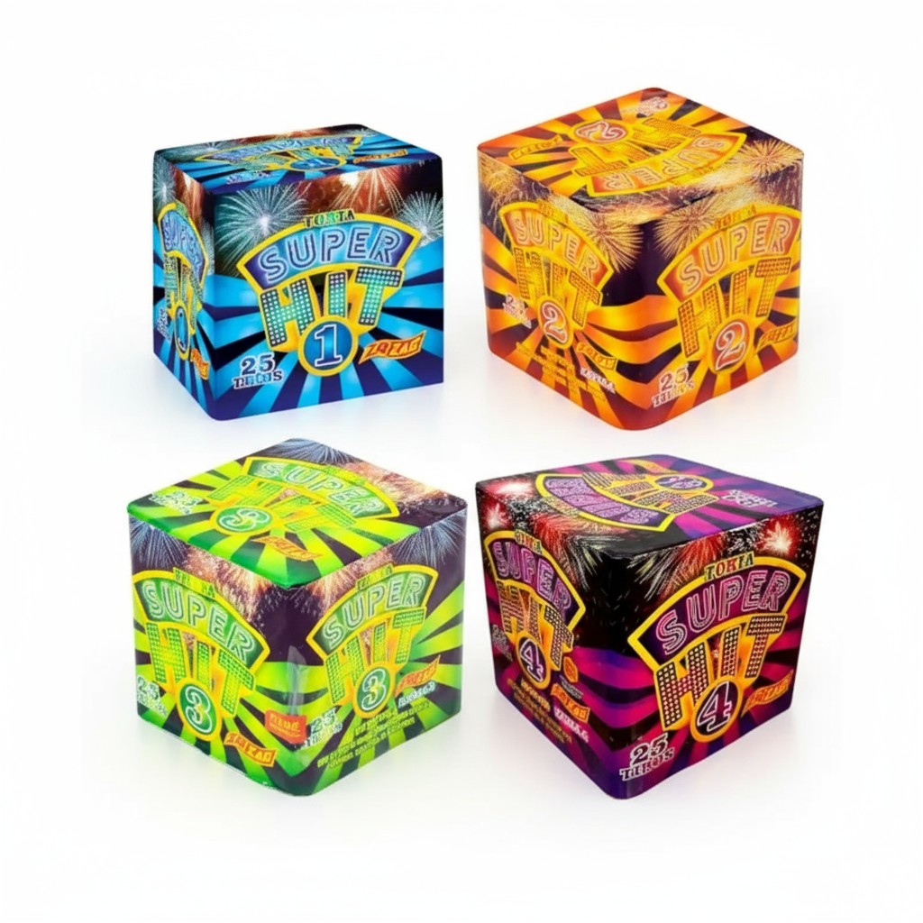 Torta Super Hit con 25 tiros de apertura media y brillo intenso.