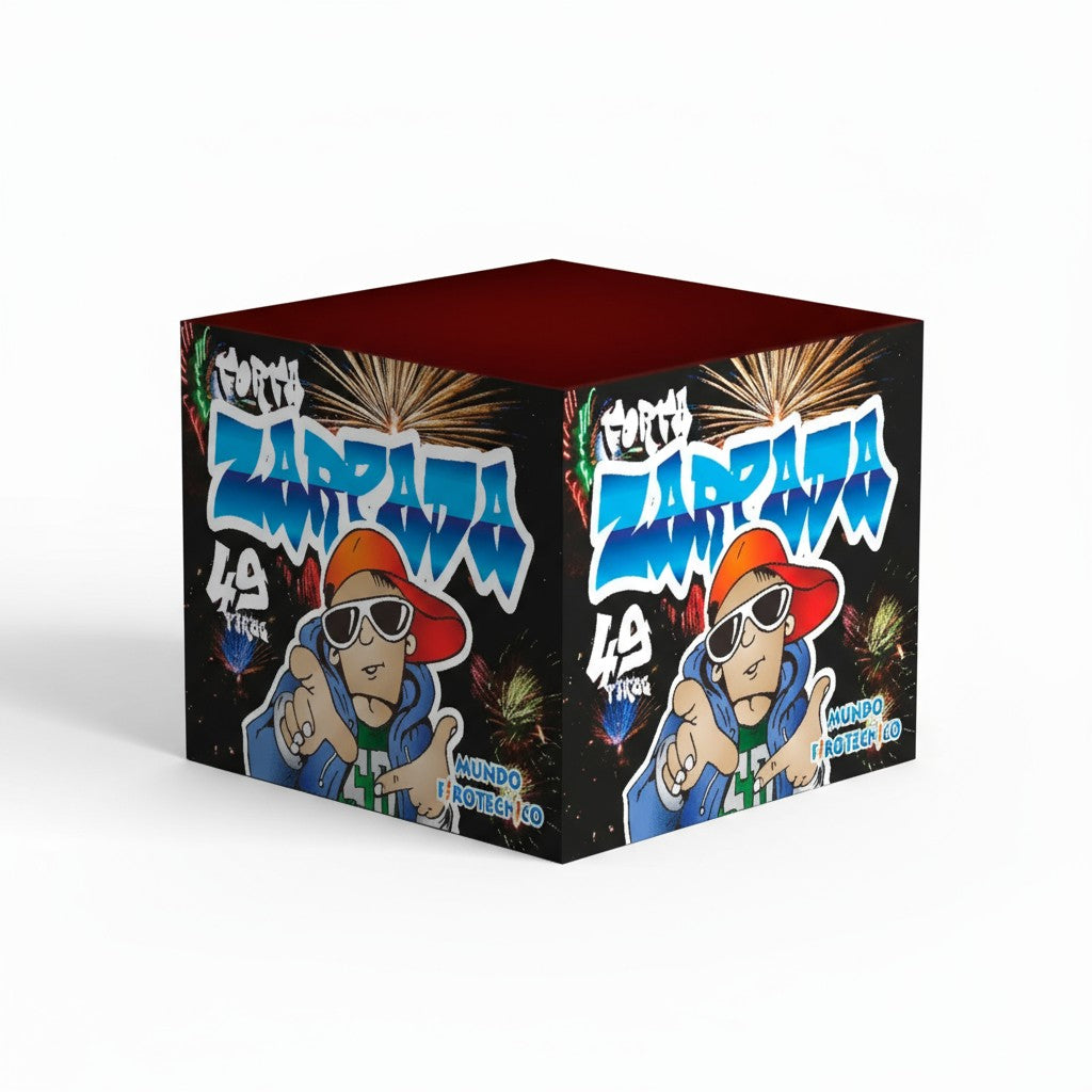 Torta de 49 tiros con ritmo alto y chispas doradas.