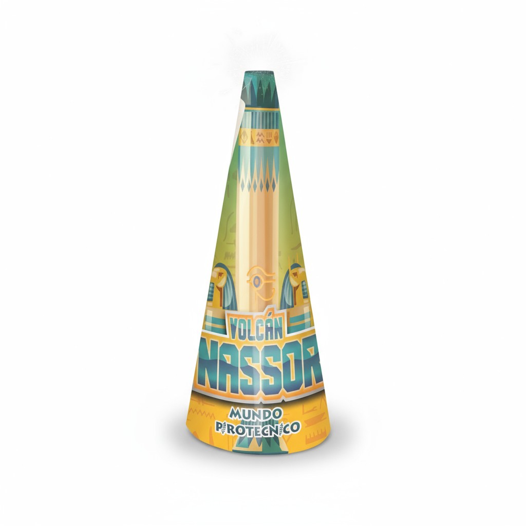 Volcán Nessor con chispas plateadas y brillo cálido.